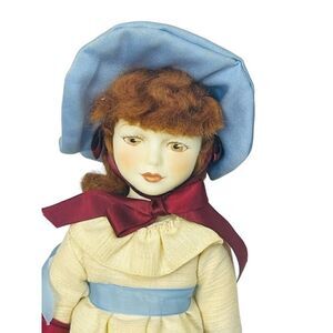 Royal Doulton Little Model Doll w/ Stand Cream Dress Blue Hat
