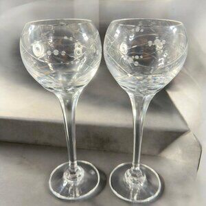 Royal Doulton PRECIOUS Pattern Clear Crystal Goblet Etched Glasses Cups Set 2