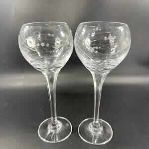 Royal Doulton PRECIOUS Pattern Clear Crystal Goblet Etched Glasses Cups Set 2