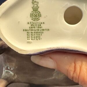 Charming Royal Doulton figurine. Features a girl in a purple dress with gold accents. Elegant and timeless design. ‘Affection’ number HN2236