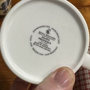 These mugs are part of the Provincial product line, and have a printed backstamp. They are break/chip resistant, freezer safe, microwave safe, and dishwasher safe. The set includes two pieces, and the pattern is Provence Rouge - Plaid. The mugs are unisex, and the style is Provence. They are perfect for tea or coffee, and will make a great addition to your pottery and glass collection.