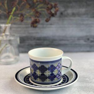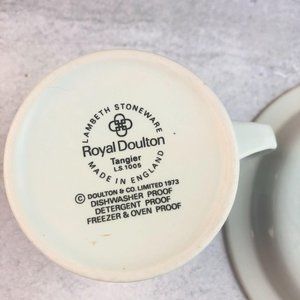 Wonderful flat teacup and saucer by Royal Doulton in the Tangiers pattern LS1005. These are vintage from the 1970s. They are dishwasher proof, detergent proof, and freezer and overproof. They are made in England.