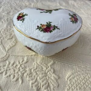Royal Doulton Victorian ceramic heart trinket box. Beautiful floral design with gold trim. Measures 4x5 inches.