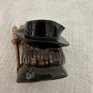 Royal Doulton, vintage 1955; miniature porcelain Toby Jug, ATHOS, #D6509, made in England, limited edition, ATHOS was a part of the Three Musketeers, 2,5” Tall by 3” wide. Prior owner had applied some black felt to bottom of jug. This piece is In excellent condition.