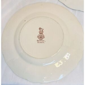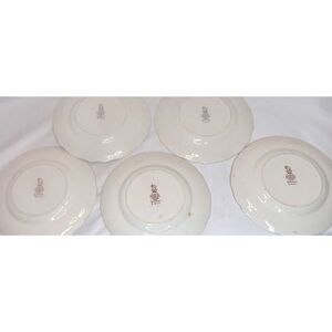Enhance your farmhouse-themed dinnerware with this vintage Royal Doulton Grantham bread plate set from England. The five-piece set includes round porcelain plates with a printed backstamp