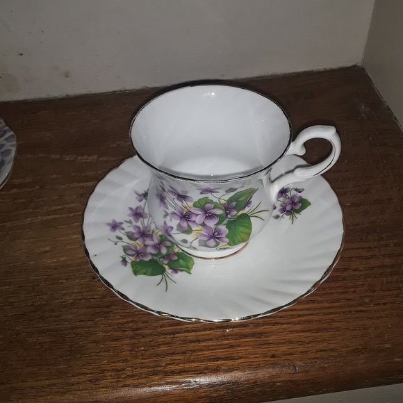 Royal Dover China Bone China Purple Floral Cup and Saucer with shell wave design