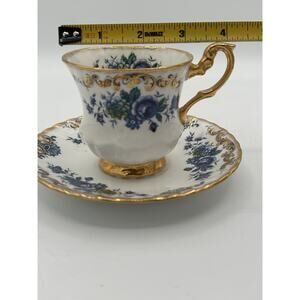 Royal Dover China Moonlight Rose Blue And Gold Cup and Saucer Gold England