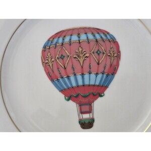 Royal Gallery Buffet Blue Red Bow Hot Air Balloon 8.5” Salad Plate Gold Gilt Rim