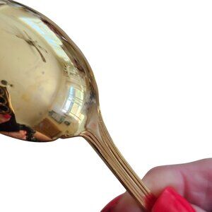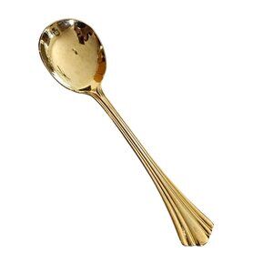 These exquisite Royal Gallery gold-plated spoon showcase a flared, ribbed design, perfect for adding a touch of opulence to any dining experience.