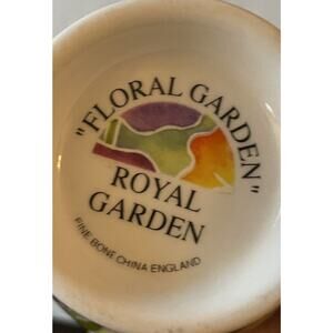 Royal Garden Floral Garden Fine Bone China Teacups Set of 2 Etched Watercolor