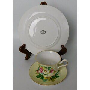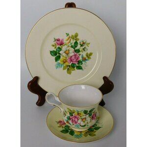 Royal Grafton AB Jones English Bone China Floral Teacup & Saucer Trio Set