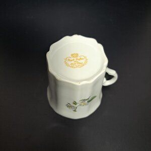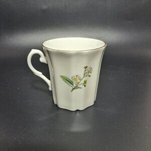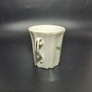 This Royal Grafton mug features a timeless floral design on fine bone china, elegantly accented with gold trim. Suitable for enjoying beverages.