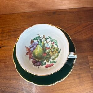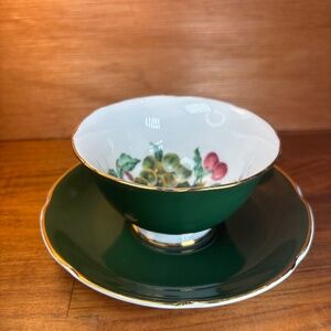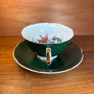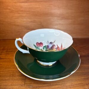 Royal Grafton Vintage fine bone china England fruit dark green cup and saucer