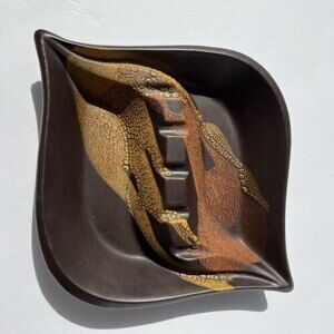 Royal Haeger #2094 Mid Century Modern Brown & Yellow Abstract Snakeskin Ashtray
