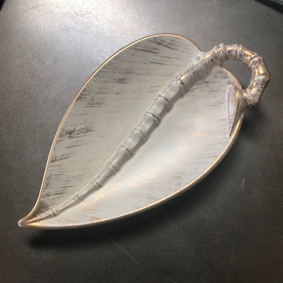 Very cool ivory and gold colored mid century modern leaf ashtray.