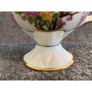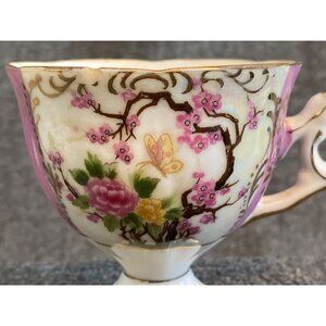 Royal Halsey Porcelain Iridescent Cup Pink Floral Butterfly Vintage