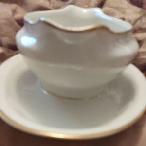 Beautiful vintage dogwood pattern Royal Jackson gravy boat with attached drip plate off white trimmed in gold, excellent condition no chips no cracks no sign of wear, 10 in wide with plate gravy boat itself is 7 in wide, great addition for Easter, Thanksgiving or Christmas dinners.
