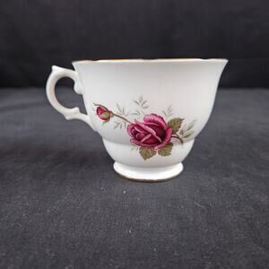 This Royal Kent Bone China Tea Cup and Saucer Set is a beautiful addition to any collection. Made in England, this set features delicate purple roses and a classic design.