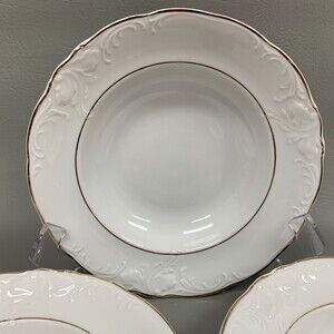 Lot of 3 Royal Kent Collection Poland White Gold Trim Rimmed Soup Pasta Bowls