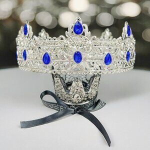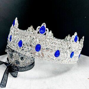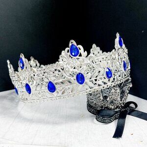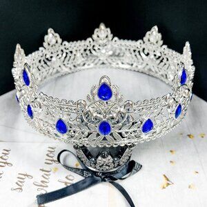 Royal King Crown, Blue Crystal Prince Crown, Vintage Silver Crown, Birthday Gift