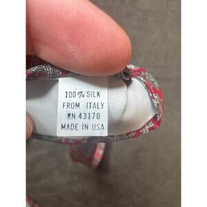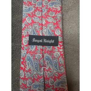 Add a splash of refined sophistication to your wardrobe with this stunning Royal Knight tie. Crafted in Italy from luxurious 100% silk, this tie boasts a rich red base color adorned with an intricate blue and silver paisley pattern. The combination of classic elegance and modern flair makes this tie a versatile accessory that elevates any look.
