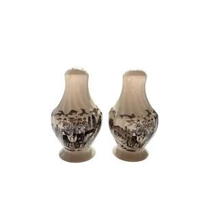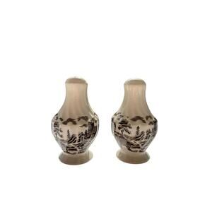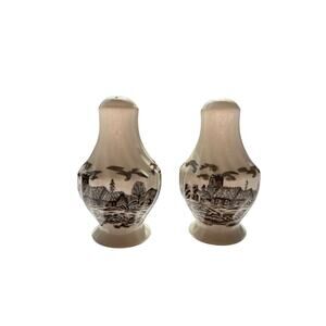 Royal Mail England Salt & Pepper Shakers Brown Transfer-ware No Corks Farmhouse