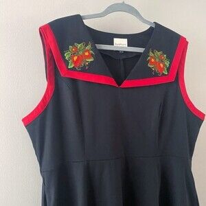 Royal Monk Black Red Strawberry Fields Collar Swing Sleeveless Dress No Belt 3X