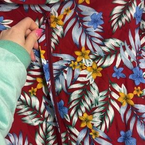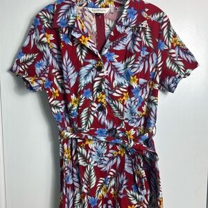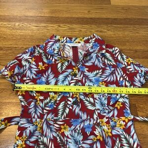 Royal Monk Red Tropical Print Floral Tie Front V Neck Midi Dress Size Large