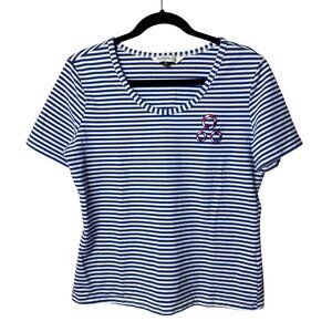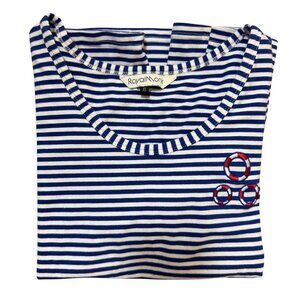 Royal Monk Vintage Blue & White Striped T-Shirt with Embroidered Life Preservers