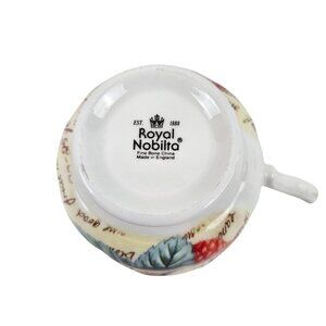 Royal Nobilta Fine Bone China Teacup Saucer Set Fruit Design England Vintage