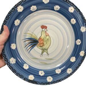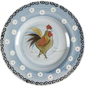 ROYAL NORFOLK 10 3/4" DINNER PLATE ROOSTER CENTER BLUE & WHITE PORCELAIN CERAMIC. DINNER PLATE THAT COULD WORK AS A CABINET OR SHELF DISPLAY IT IS SO CHARMING - SOFT BLUE / GRAY COLORS WITH A CHARMING HAND-PAINTED ROOSTER AT THE CENTER. EACH PLATE IN THIS PATTERN IS SLIGHTLY DIFFERENT IN COLOR INTENSITY, PLACEMENT OF THE ROOSTER AND OTHER DETAILS. PRODUCED CIRCA 2009-2015 - NOW DISCONTINUED - EACH PLATE IS CLEARLY HALLMARKED. IN EXCELLENT PRE-OWNED CONDITION - LIGHT UTENSIL MARKS AND SHELF WEAR - NO SIGNIFICANT DAMAGE OR FLAWS.