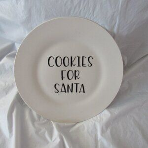 Royal Norfolk 10.5" white plate with Cookies for Santa in black in the center. Made in the U.S.A. Dishwasher and oven safe.