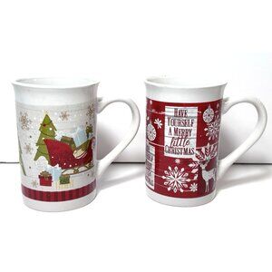 Royal Norfolk Red Mugs Have Yourself A Merry Little Christmas & Santa's Sleigh