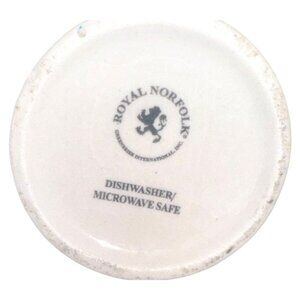 This Royal Norfolk ceramic mug features a festive snowflake design with a blue accent. Microwave and dishwasher safe for everyday convenience.