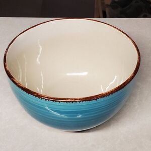 Royal Norfolk Turquoise Swirl Coupe Brown Trim Soup Cereal Pasta Pottery Bowl 5.5.