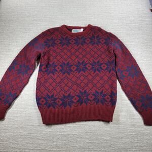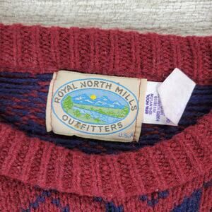 Royal North Mills Outfitters Wool Sweater Nordic Snowflake Red Blue USA Made L