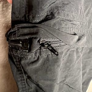 The Royal Robbins Convertible Cargo Pants in size 2 are versatile and practical for hiking or any occasion. These black pants feature a zipper and button closure, adjustable leg length, and a comfortable mid-rise fit. Made from 100% nylon, they are lightweight and easy to care for, making them ideal for travel or casual wear. The convertible feature allows you to transform them into shorts, while the cargo style and various pockets add functionality to the design. Perfect for all seasons, these pants offer both comfort and style.