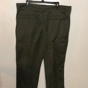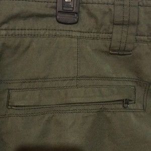 Mens green pants by Royal Robbins. Size 40/32. Has two front pockets and one inside zipper pocket in one of the front pockets. Two back pockets (1 velcro closure and 1 zipper closure). Also one velcro pocket on back of leg pants. In good condition. Comes from smoke free home.