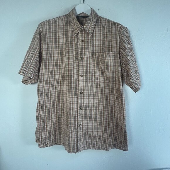 Royal Robbins Mens Plaid Short Sleeve Button-Up Shirt Large Organic Cotton Blend