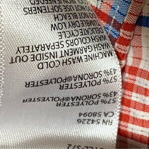 This Men's Standard Fit Short-Sleeved Button-Down Shirt by Royal Robbins is a Size L and is made of Polyester and Sorona Polyester. It has a red, white and blue plaid pattern with a light texture, pockets on the chest and a tab logo on the bottom side. Gently used. Great Condition!