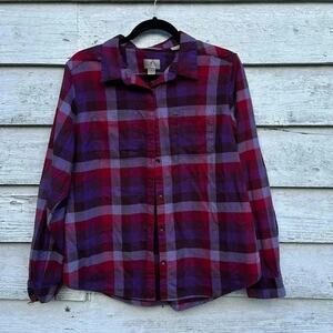 Royal Robbin plaid flannel shirt, button down, purple and pink in good condition