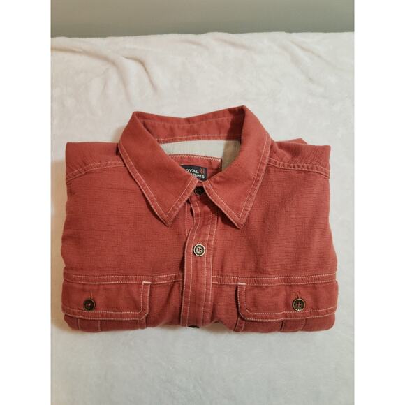 Royal Robbins Shirt Mens Large Red 100% Cotton Long Sleeve Gorpcore Camping