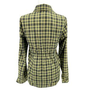 Royal Robbins Womens Button Up Plaid Green Yellow Size Med Zip Side Pocket Elastic.