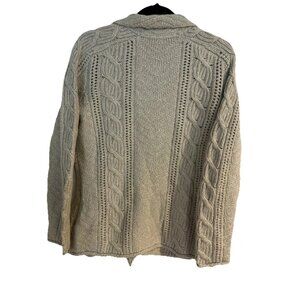 This Royal Robbins Women’s Size Medium Collared Cardigan in Cream is a classic and lightweight sweater perfect for outdoor activities. Made from a blend of cotton and acrylic, this open-knit cardigan features covered buttons, long sleeves, and a collared neckline. The oatmeal color adds a versatile touch to the garment, making it machine washable for easy care. With a regular fit and classic style, this cardigan is a wardrobe staple for any woman looking for a stylish and comfortable sweater for everyday wear.