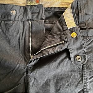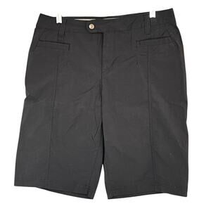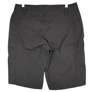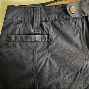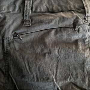 Black nylon blend fabric. Plenty of stretch for everyday wear. Quick dry. Front slash pockets. Back zip pockets. Zip and snap closure. Preowned in excellent condition. Smoke free.