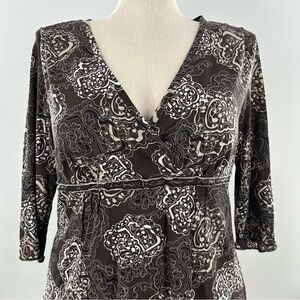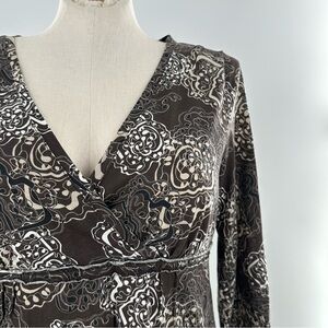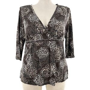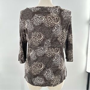 Royal Robbins womens top size XL brown white 100% organic cotton floral v-neck