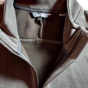 This is a nice gray color. My first 2 pictures look brown but it is gray. It is in very good condition. No marks or rips. Easy care, machine washable. Very soft and comfortable. Size M Great for going any wear.