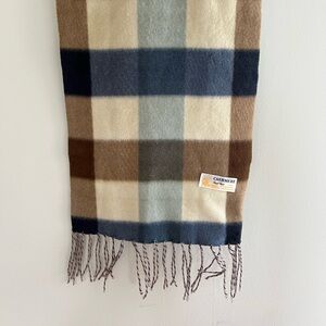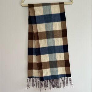 Royal Rossi Plaid Mongolian Cashmere Fringe Scarf Blue Brown Cream