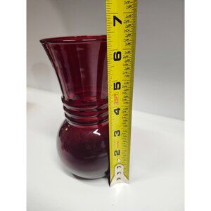 Royal Ruby Anchor Hocking MCM Vintage Red Glass Vase Bulbous Bottom Banded