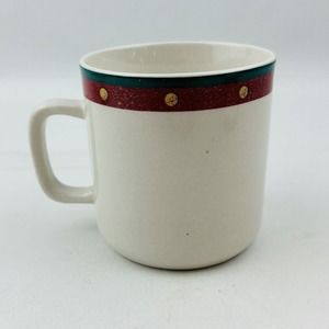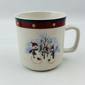 Royal Seasons Snowmen 4 Mug Lot 3.25" Cup Red Band Dots Green Trim Stoneware